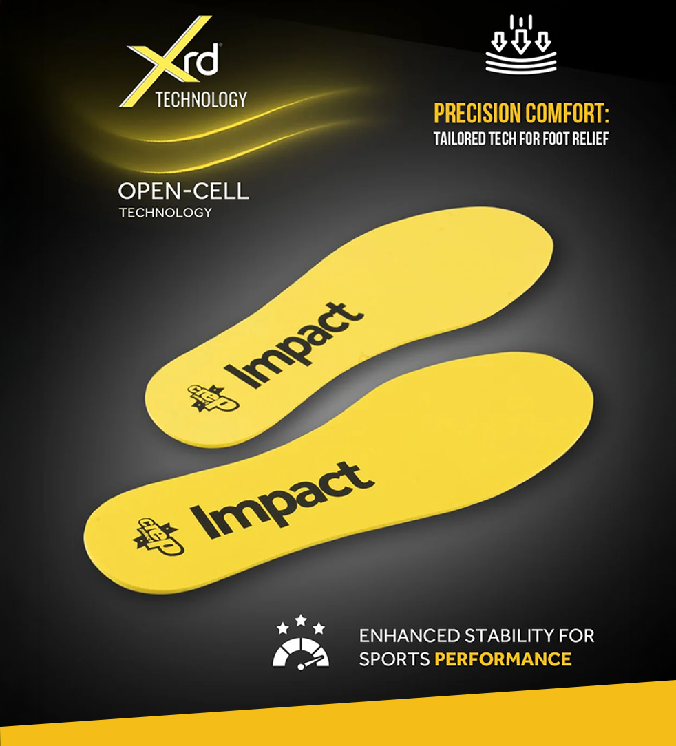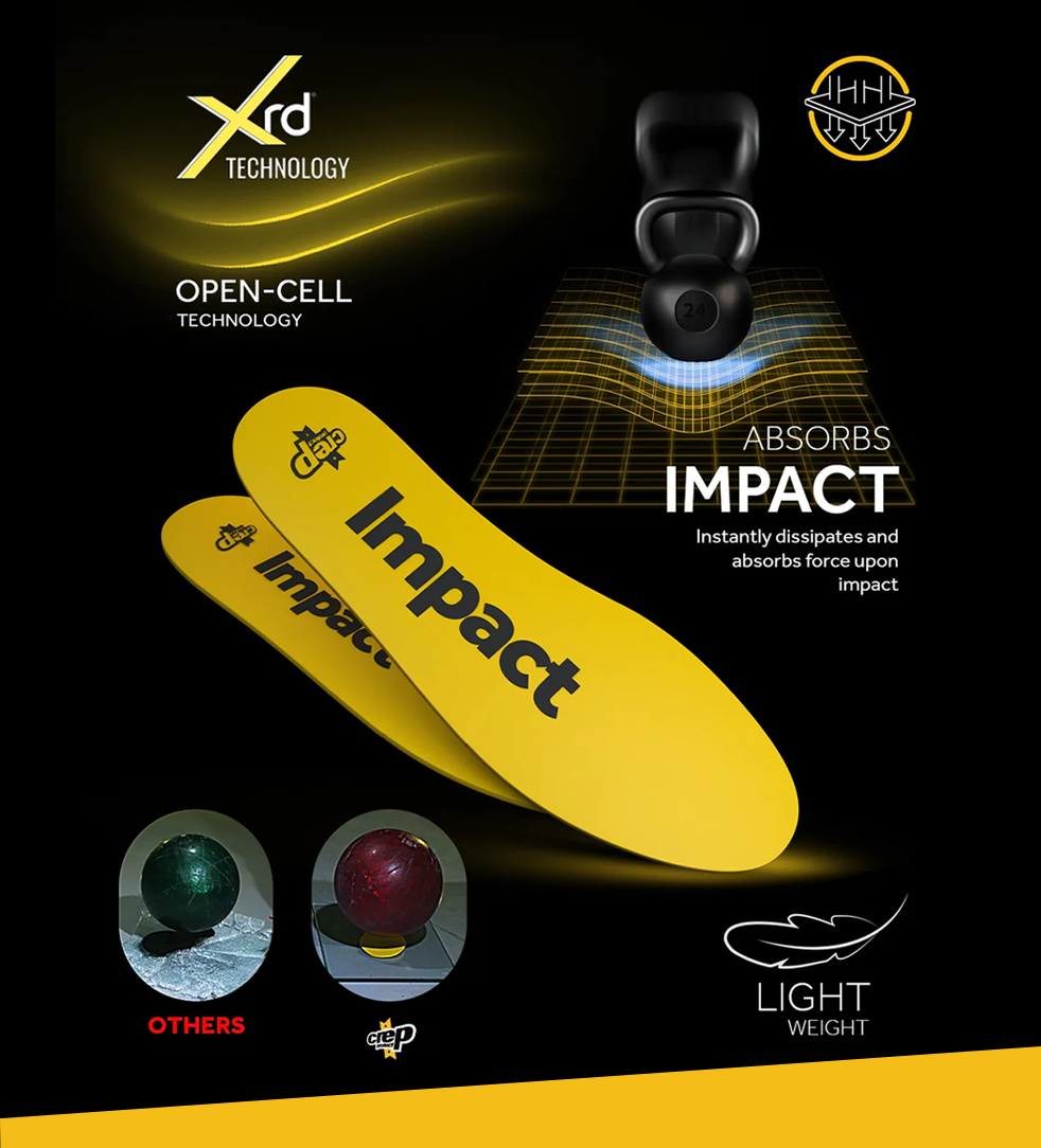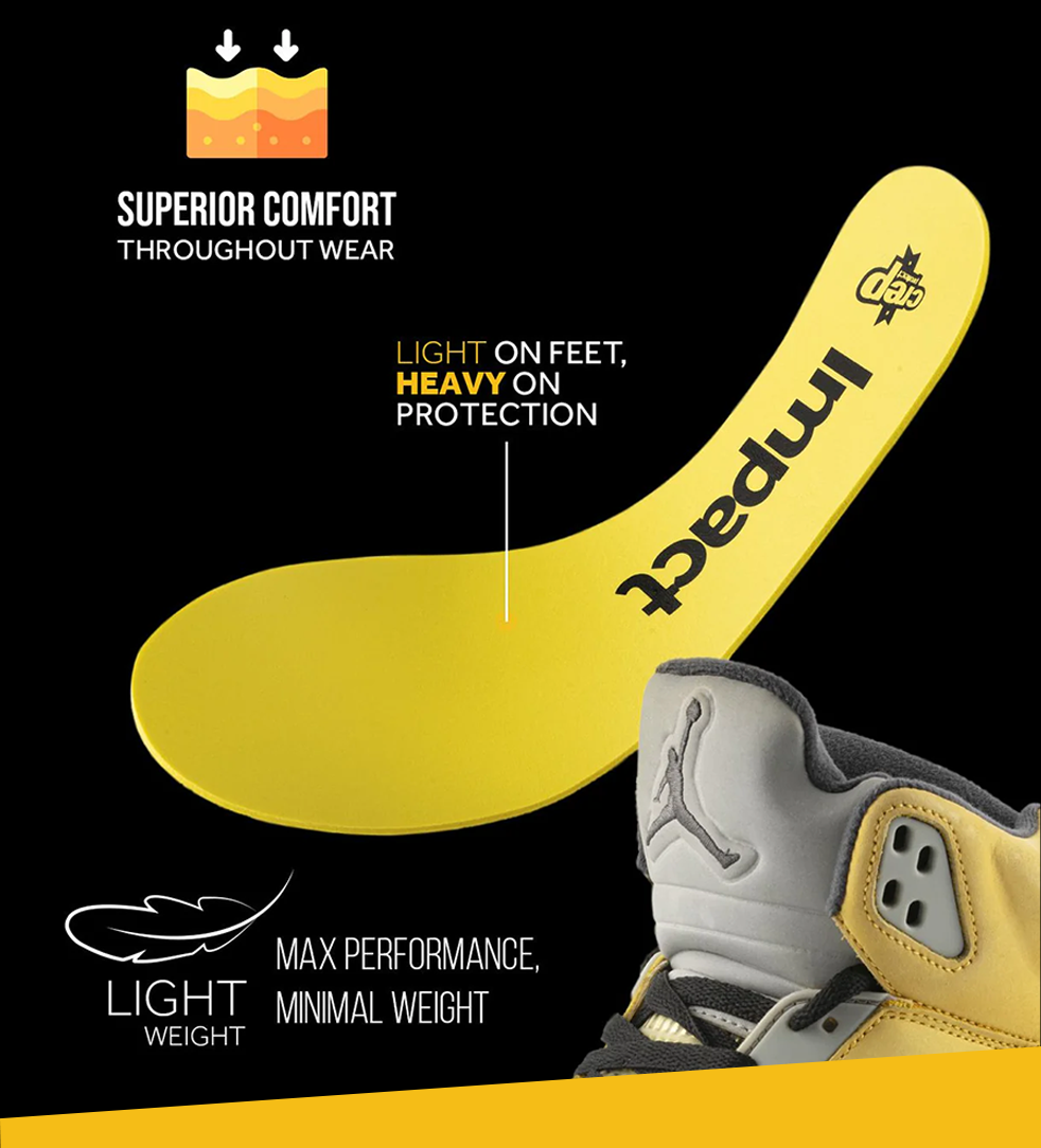 The Crep Protect impact insole instantly dissipates force on impact, absorbing up to 90% of energy from impact. Poron open-cell technology insoles tailored to your lifestyle Impact, Sport, and Comfort - with specifically designed elements to suit the needs of the wearer. The sport insoles reduce and redirect force away from the foot, creating maximum propulsion, with consistent resilience and cushioning.