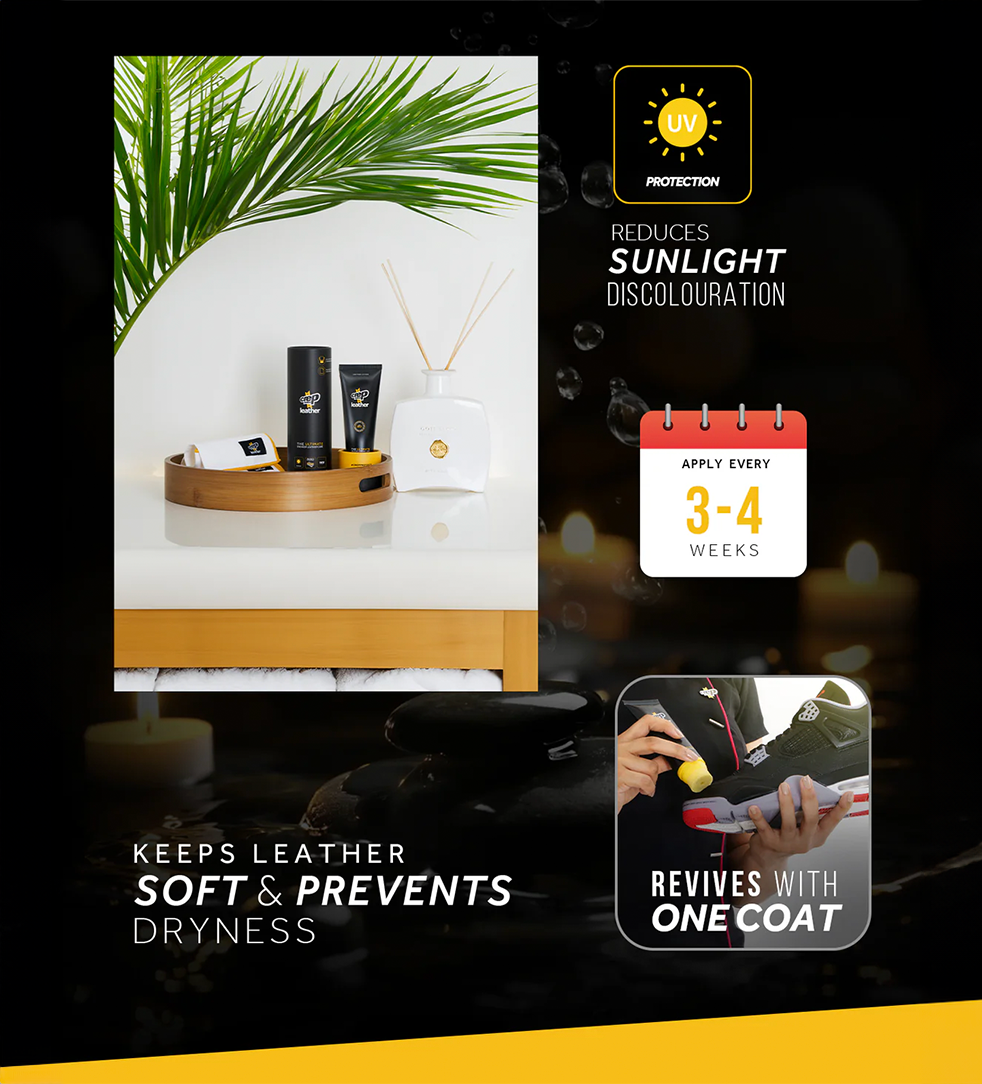 The frequency of use depends on how often the sneakers are worn and the conditions they're exposed to. For regular wear, using the lotion once every few weeks or as needed to maintain the leather's moisture and protect against stains is advisable.