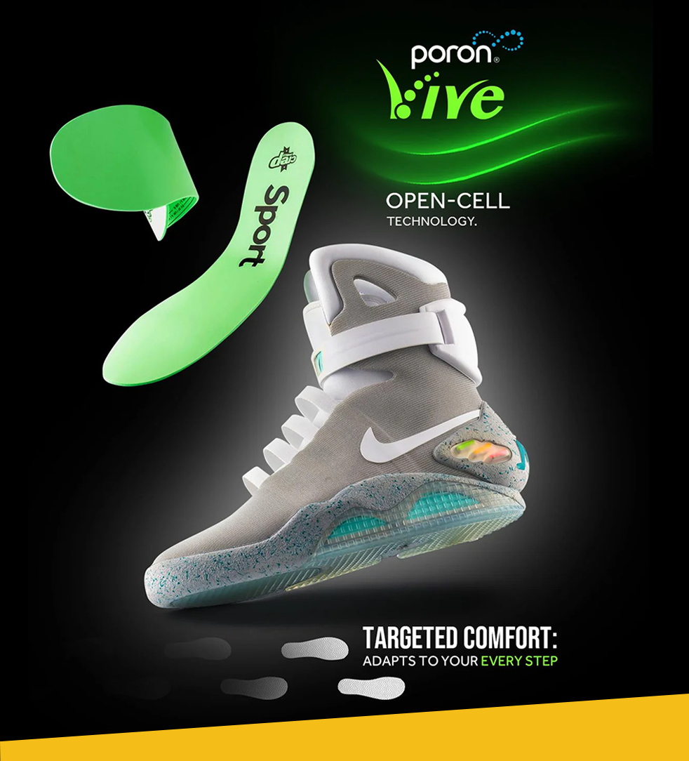 We have three types of insoles. Each uses a different type of Poron open-cell technology to target different purposes
